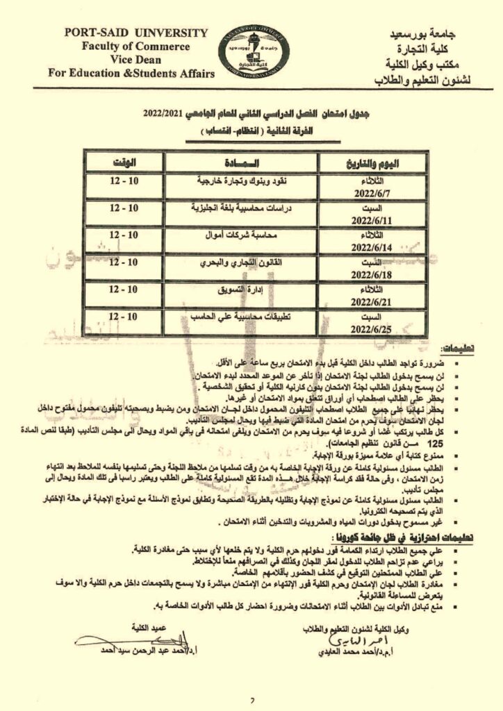 جدول امتحانات الفرقة الثانية انتظام- انتساب الفصل الدراسى الثانى من العام الجامعى 2021/2022بواسطة Commerce Author / مايو 22, 2022