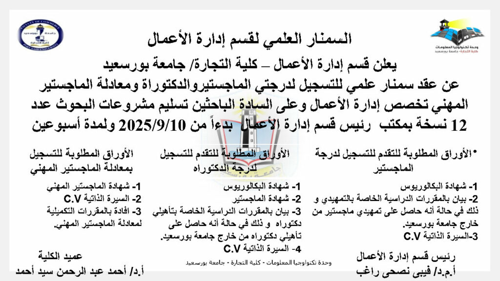 عقد السيمنار العلمى لقسم ادارة الاعمال بكلية التجارة