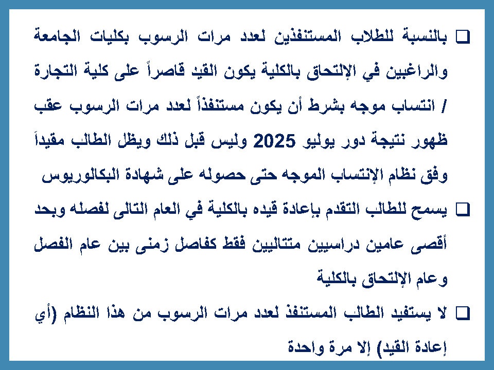 فتح باب التحويلات لطلاب كلية التجارة