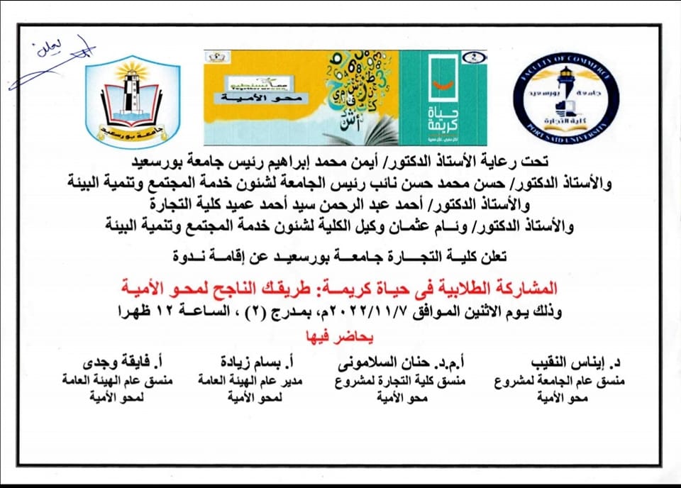 ندوة بعنوان (حياة كريمة طريقك الناجج لمحو الأمية)