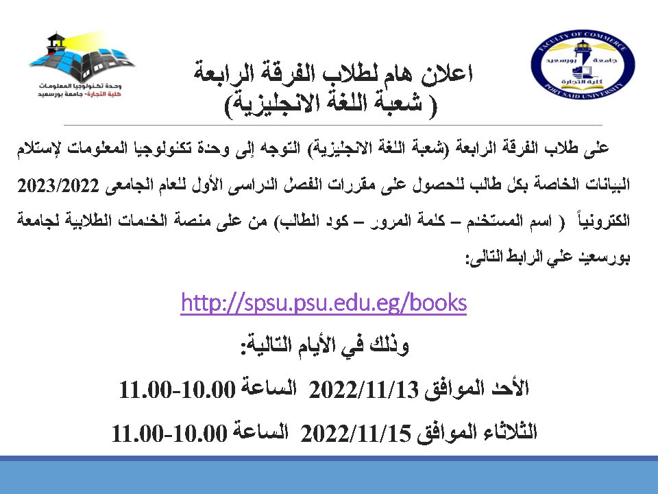 حسابات الفرقة الرابعة (شعبة اللغة الإنجليزية)الخاصة بالمقررات الإلكترونيةبواسطة Commerce Author / نوفمبر 9, 2022