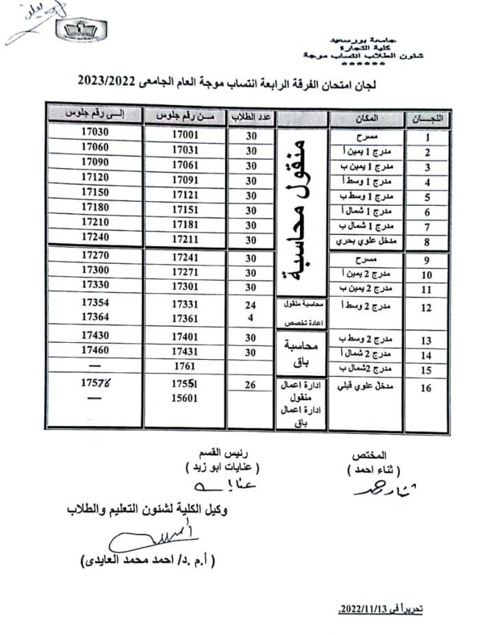 لجان امتحانات أعمال السنة لطلاب الفرقة الرابعة / انتساب موجهبواسطة Commerce Author / نوفمبر 25, 2022 كشوف المناداة للفرقة الرابعة انتساب