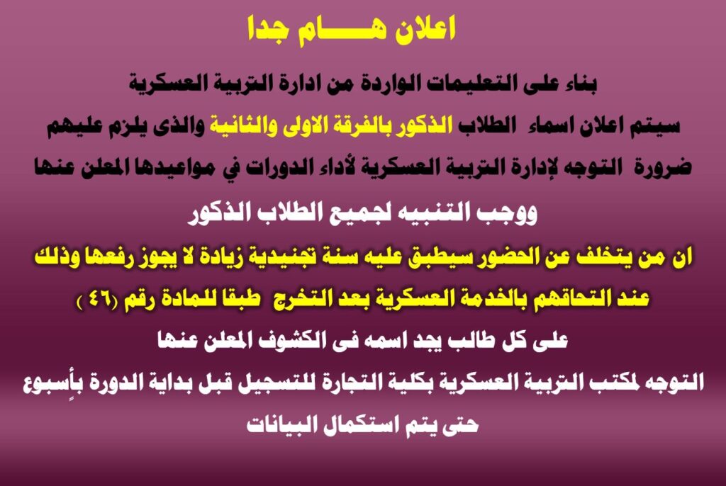 دورة التربية العسكرية 12 نوفمبر 2022بواسطة Commerce Author / نوفمبر 5, 2022 دورات التربية العسكرية لطلاب الفرقة الاولى