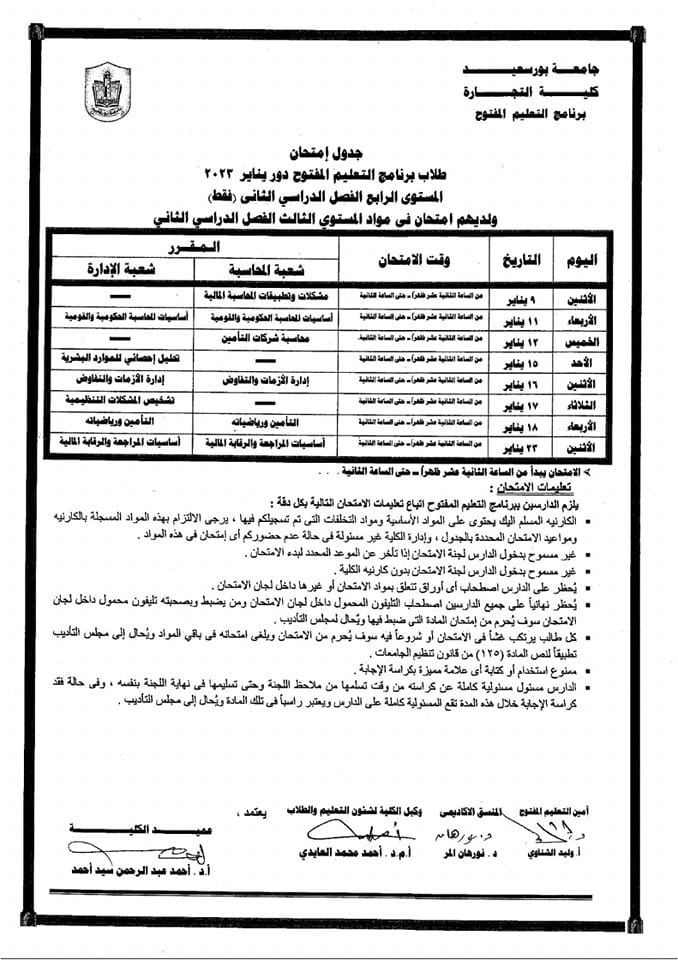 جدول امتحانات طلاب المستوى الرابع ولديهم مواد بالمستوى الثالثبواسطة Commerce Author / ديسمبر 21, 2022