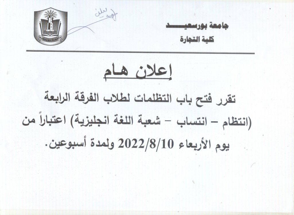 فتح باب الالتماسات للفرقة الرابعة ( انتظام- انتساب- شعبة اللغة الانجليزيةبواسطة Commerce Author / أغسطس 9, 2022