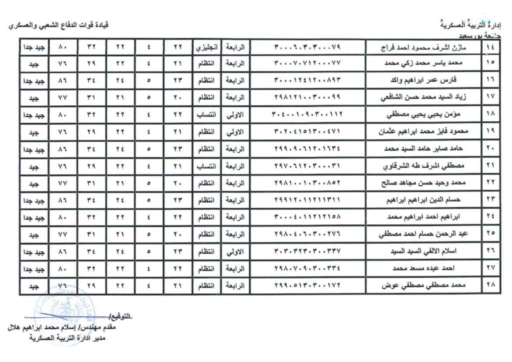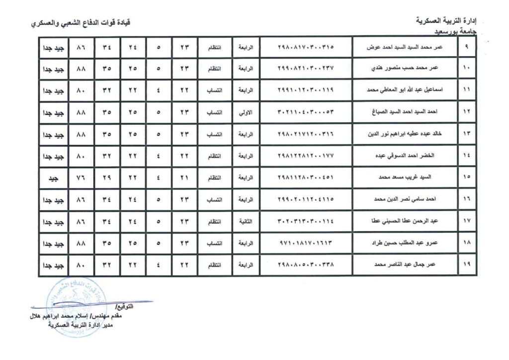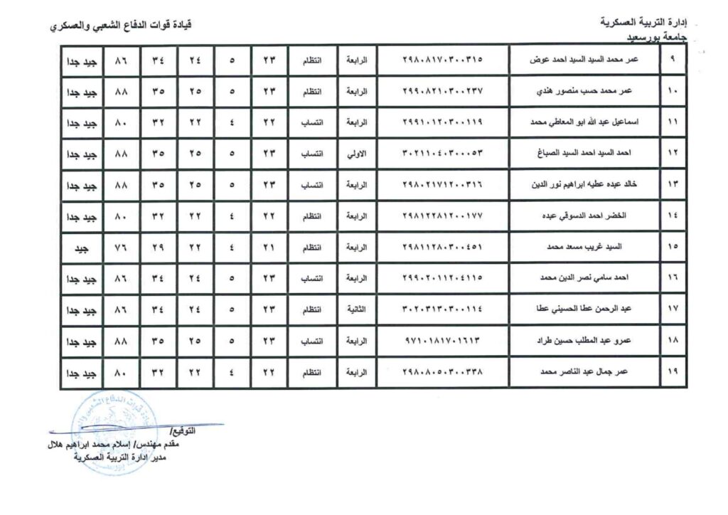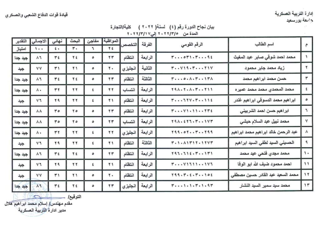 نتيجة دورة التربية العسكرية رقم ( 3)من 19/2/2022- 3/3/2022